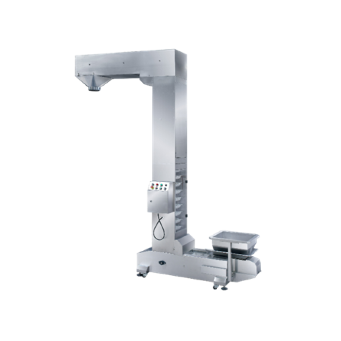 Система упаковки снеков в саше-пакеты JYS-180 соответствует высоким техническим требованиям и включает в свою структуру вертикальный ковшовый конвейер, мультиголовочный весовой дозатор, горизонтальную машину для формирования, наполнения и запечатывания пакетов, а также площадку для осмотра и технического обслуживания оборудования на высоте. Каждая весовая головка дозатора оснащена независимой электронной платой, отвечающей за взвешивание, движение и обработку, что значительно упрощает обслуживание дозатора. Тензодатчик для управления подачей из ковшового элеватора размещен под центральным вибратором. Машина разматывает рулон плоской пленки над оправкой и формирует из нее трубку. Продукт загружается сверху, пленка разрезается на отдельные пакеты и запечатывается термосваркой.
